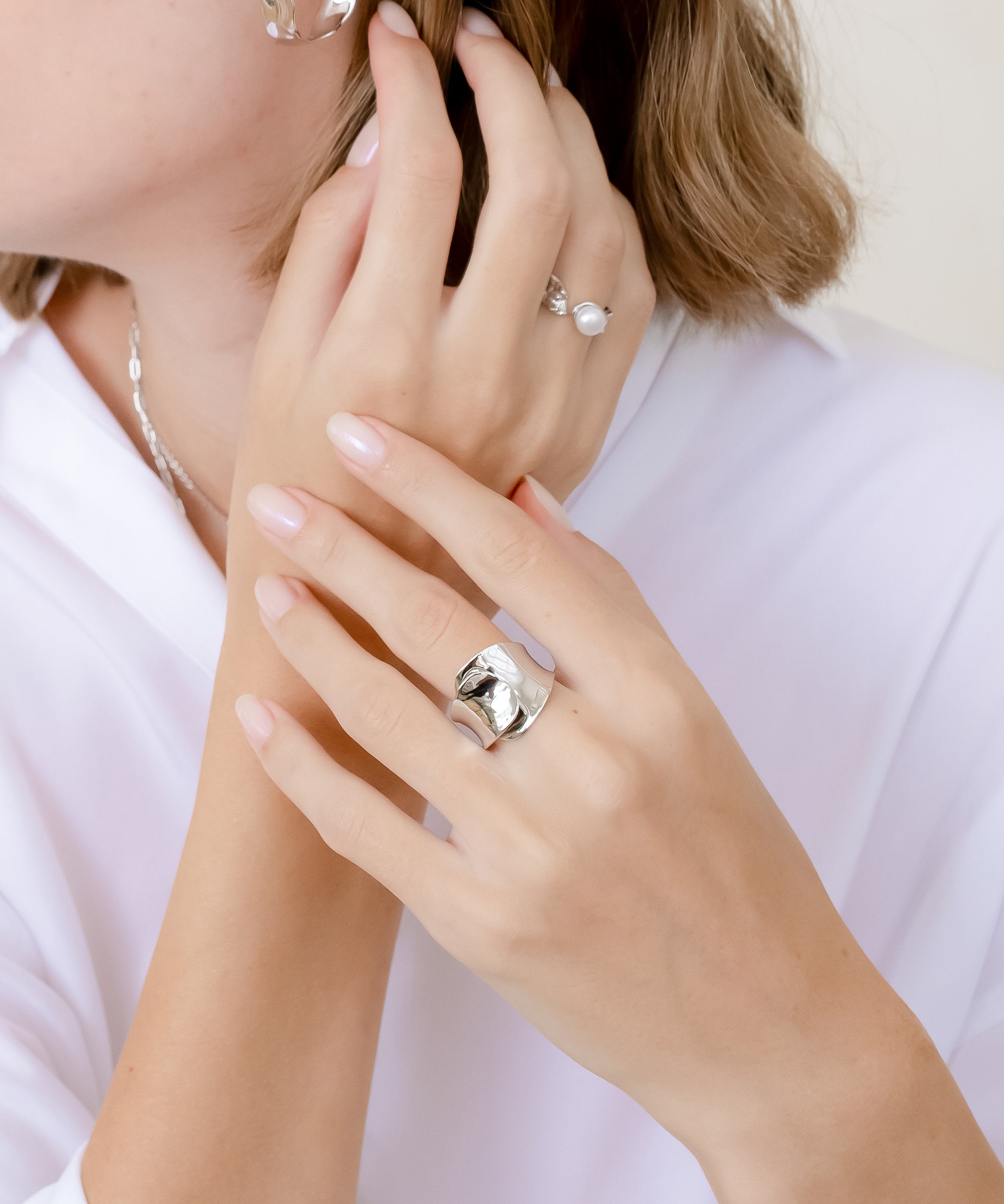 Flow Crest Pearl Ring