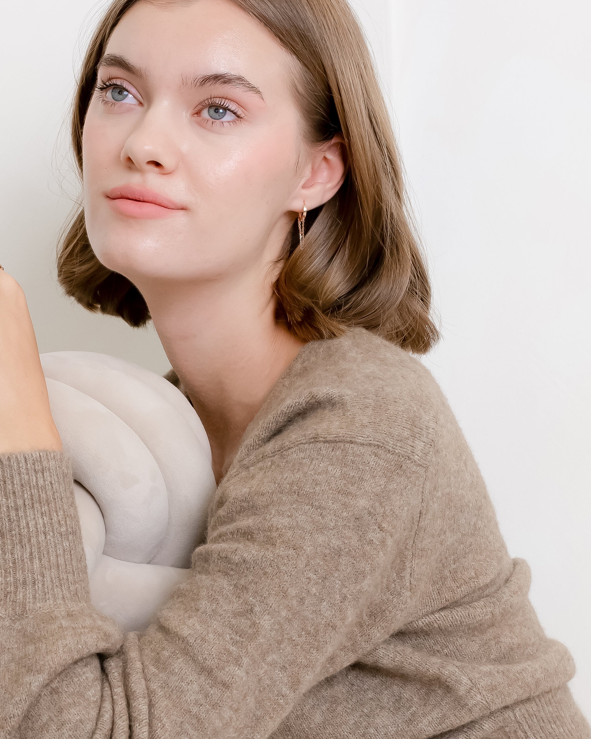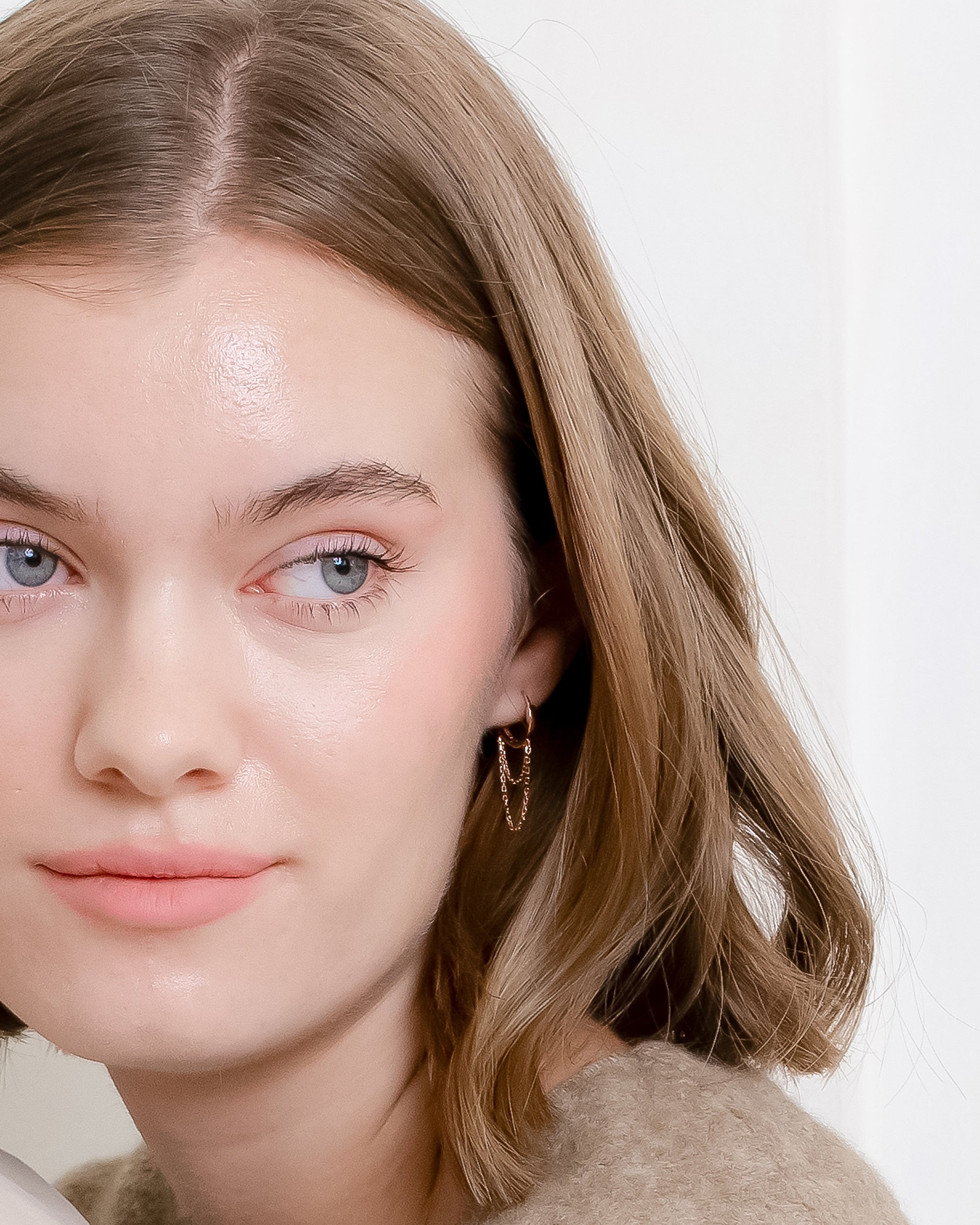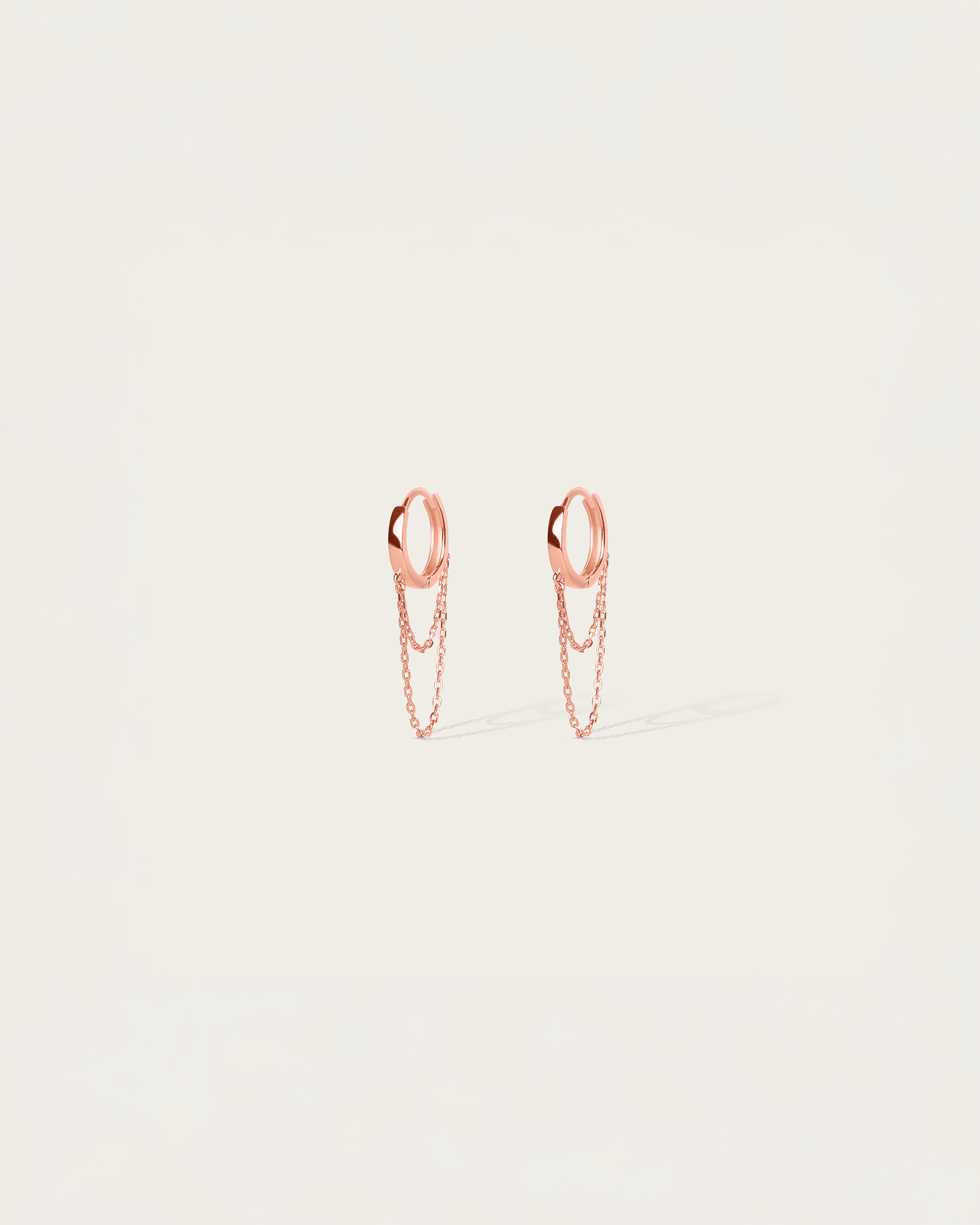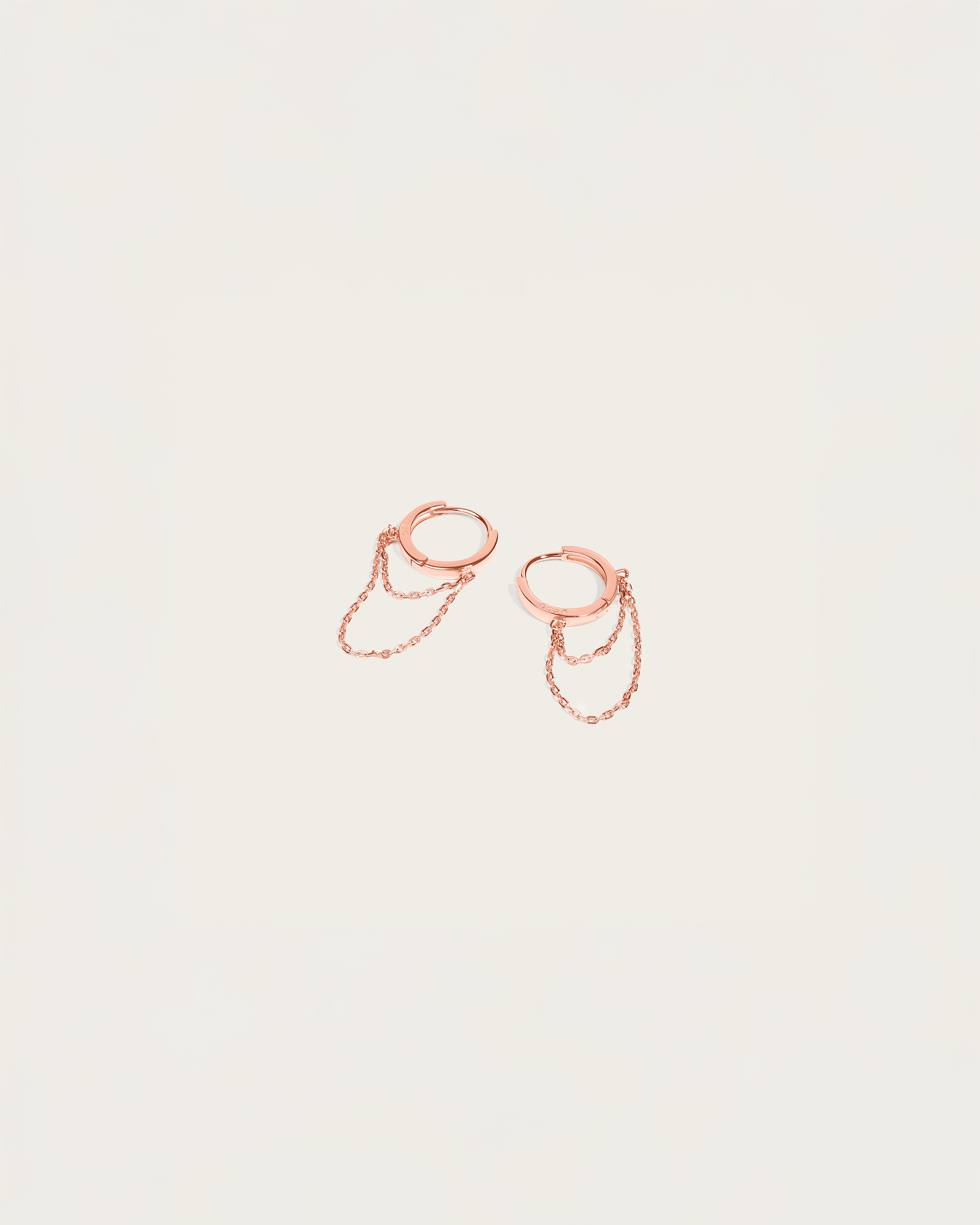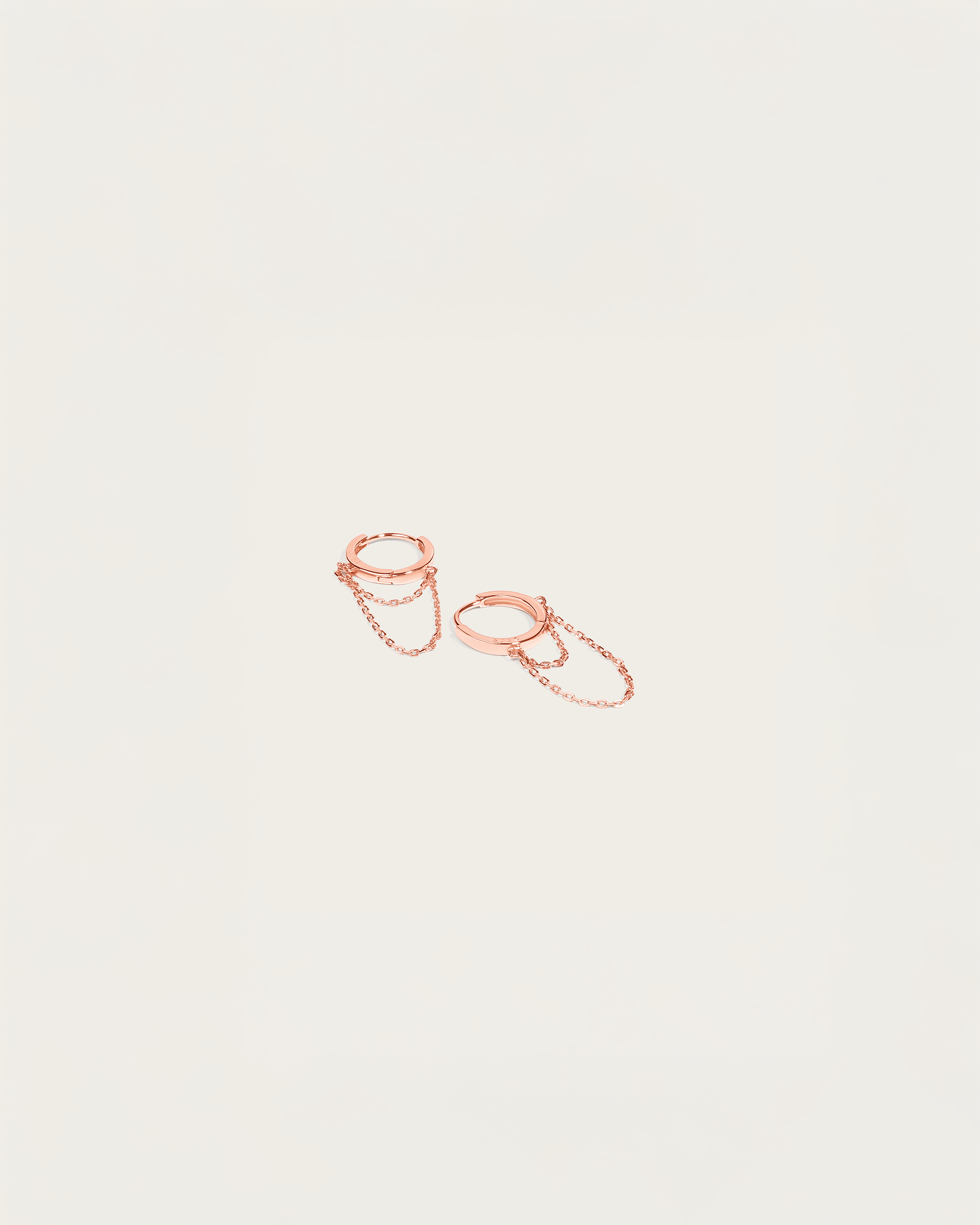 These rose gold vermeil huggie earrings reinterpret a classic staple piece with double cable chains that drape from each hoop. The layered design introduces subtle dimension and movement to an understated design.