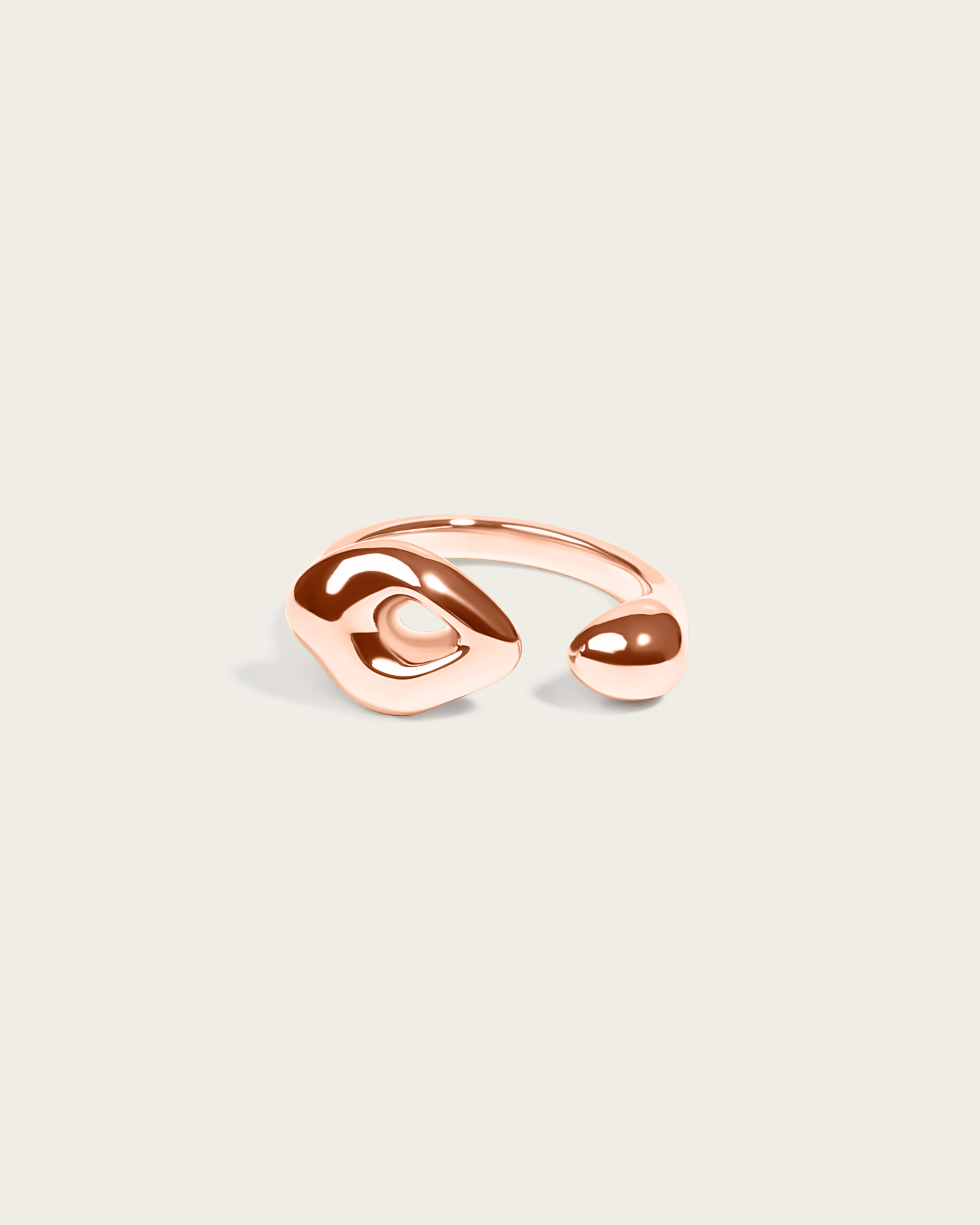 A sculptural open-front ring with smooth, liquid contours that flow effortlessly around the finger. Made high-polish rose gold vermeil over sterling silver, this piece from the Flow Series captures movement in its purest form.