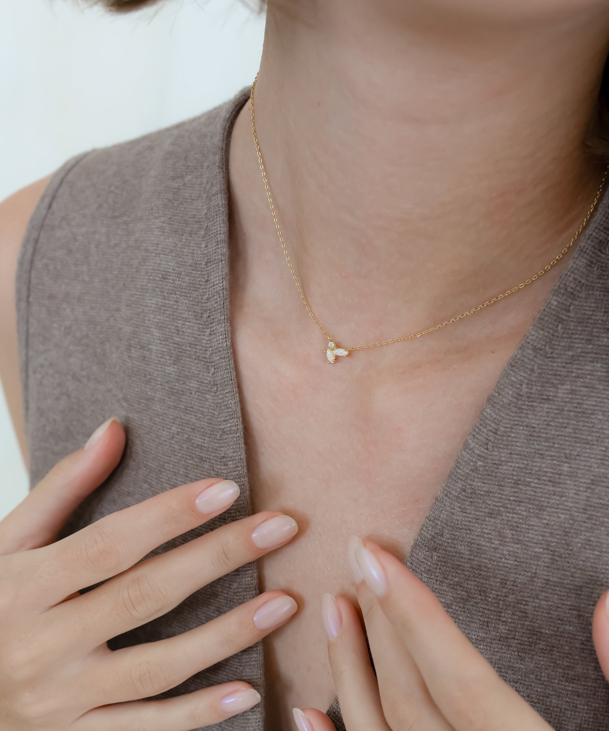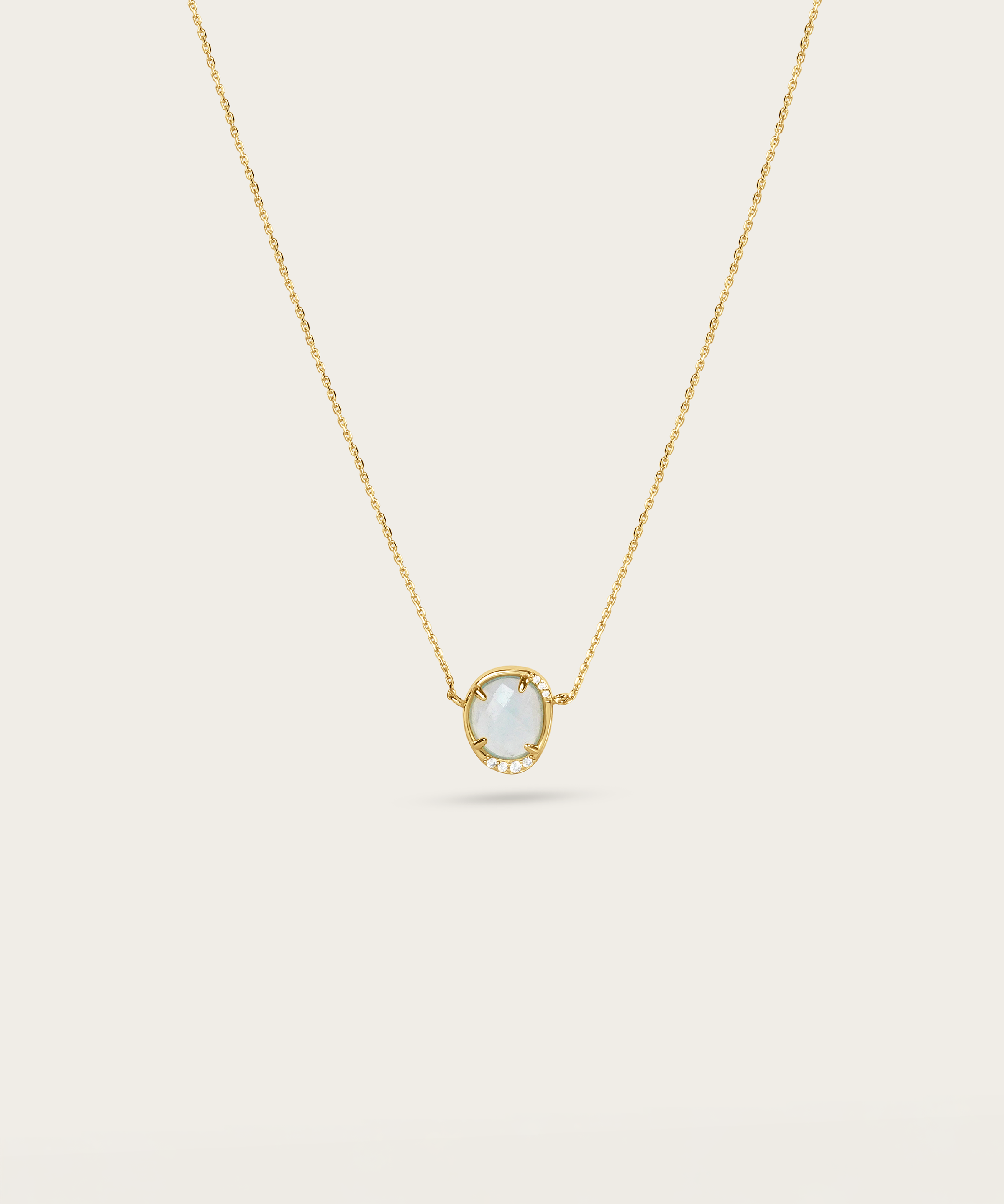 Miaora necklaces explore clean lines, fluid silhouettes, and thoughtful scale. From fine chains with restrained detail to sculptural pendants shaped in recycled sterling silver and finished in gold vermeil. Forms are subtly organic, echoing water-worn shapes and natural movement without overt ornament. Pearls and lab-grown opals appear where material contrast adds intention, not excess. Each piece is designed to sit with precision on the body, layering with quiet balance or holding presence on its own. The result is a focused collection rooted in form, proportion, and refined everyday wear.