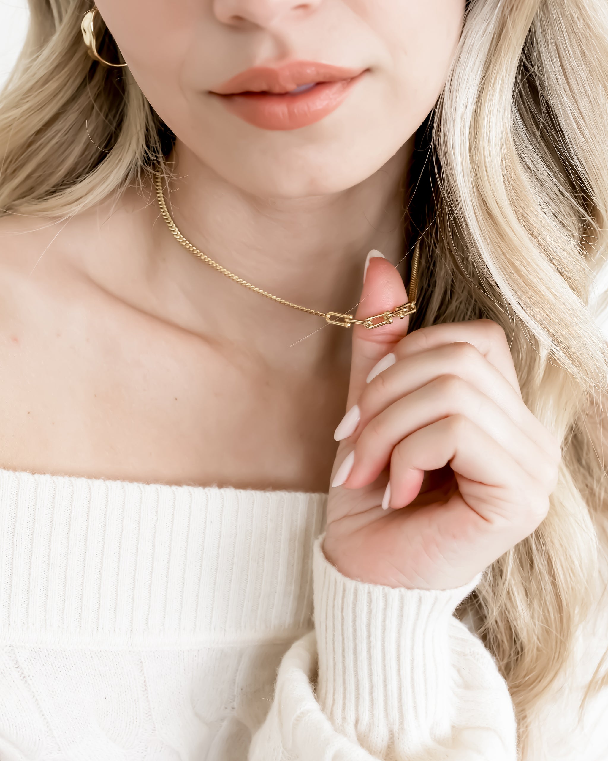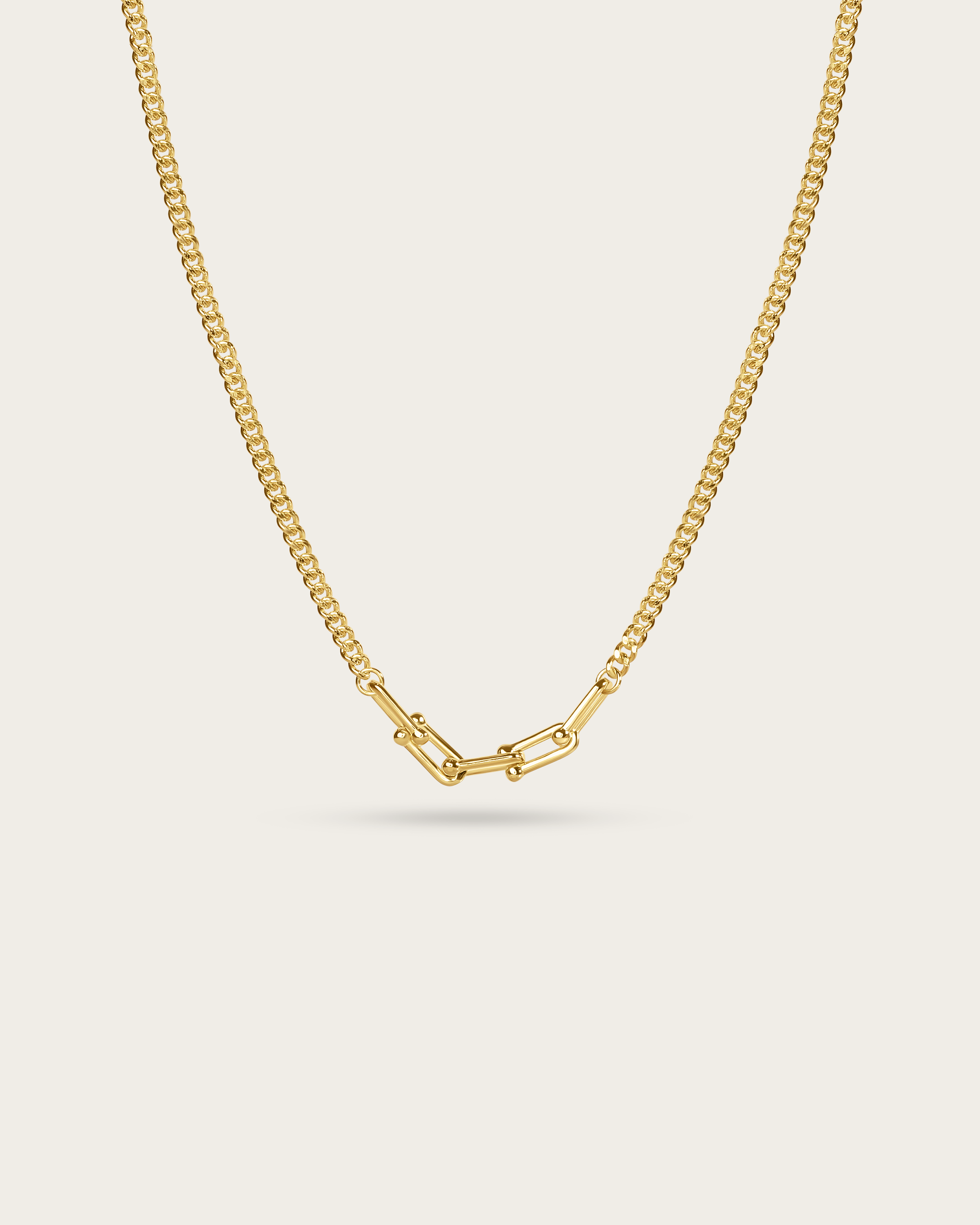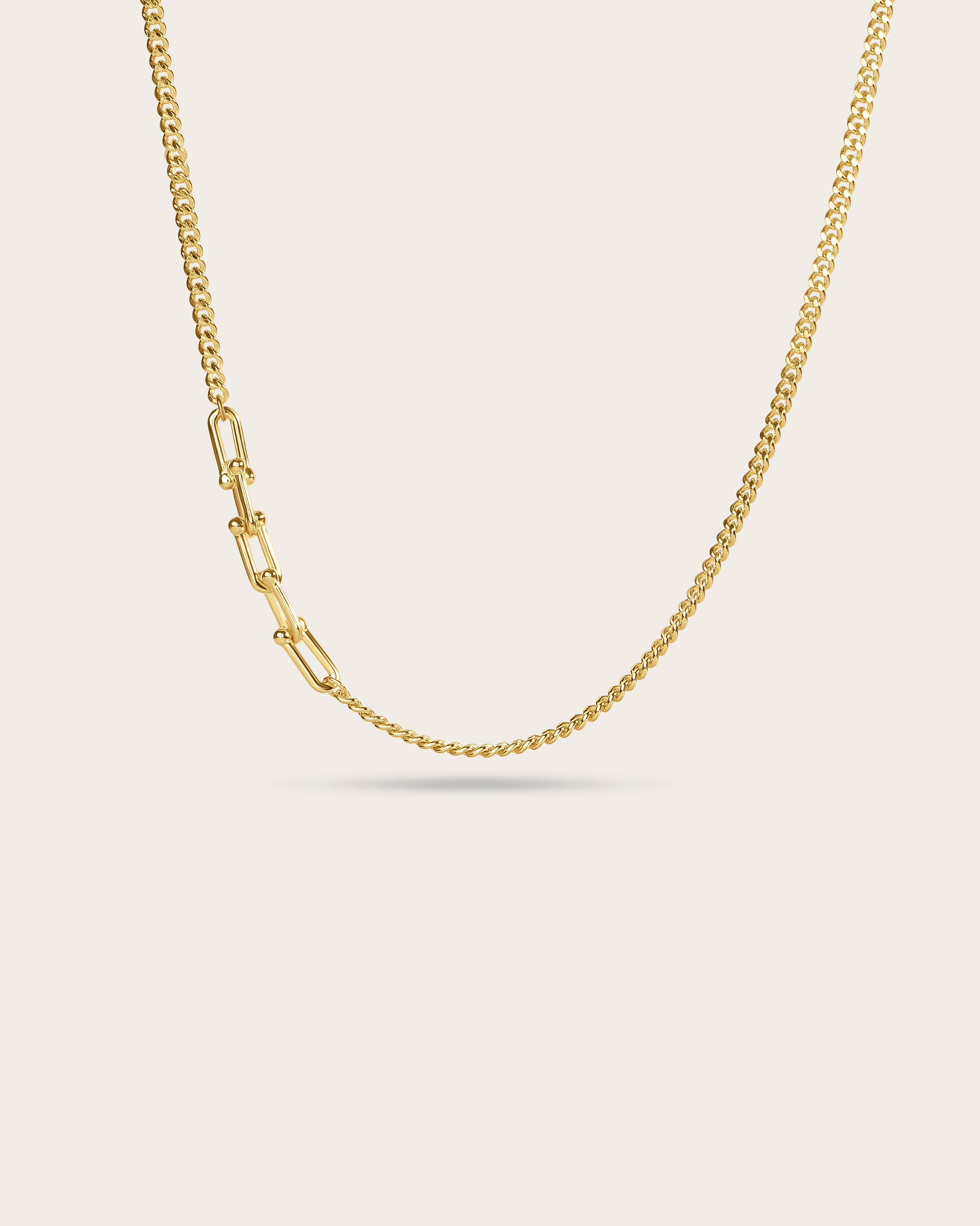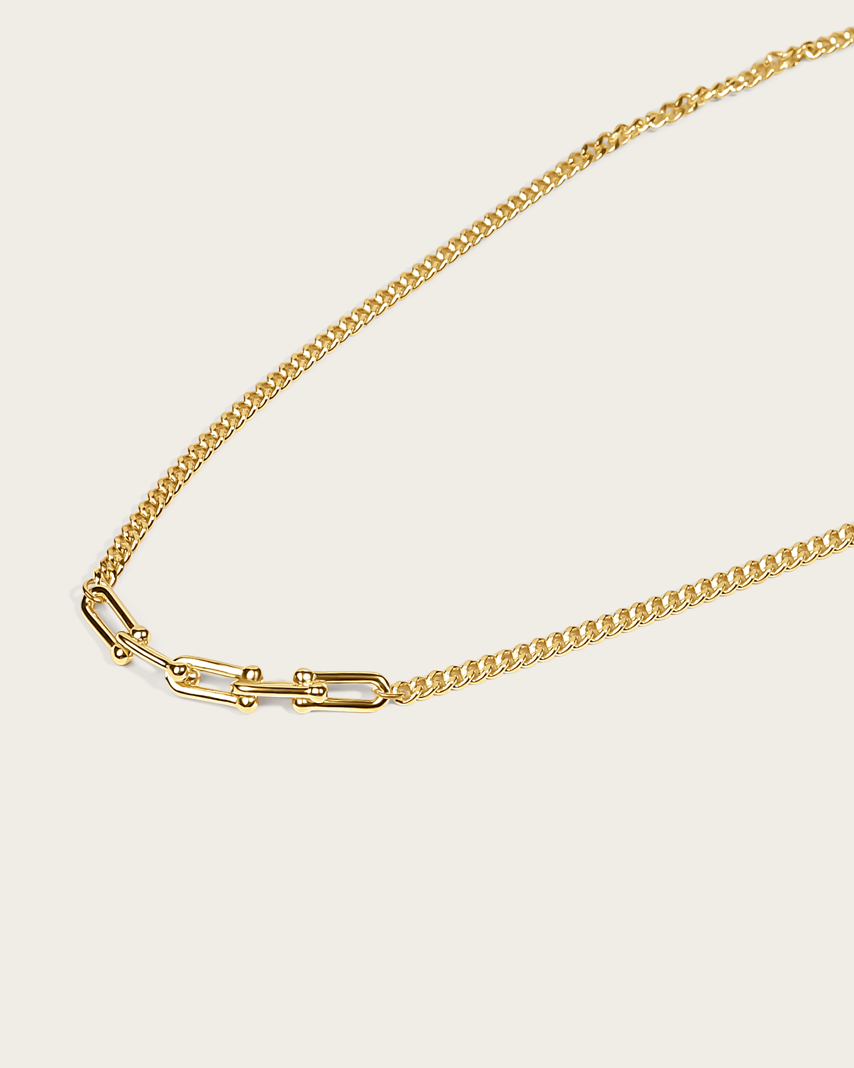 A modern take on a classic silhouette, this medium-weight curb chain necklace features paperclip-inspired front links in gold vermeil over sterling silver. Designed as an everyday essential with a subtle twist, It can be worn solo as a staple piece or stacked effortlessly with other necklaces for a range of distinctive looks.