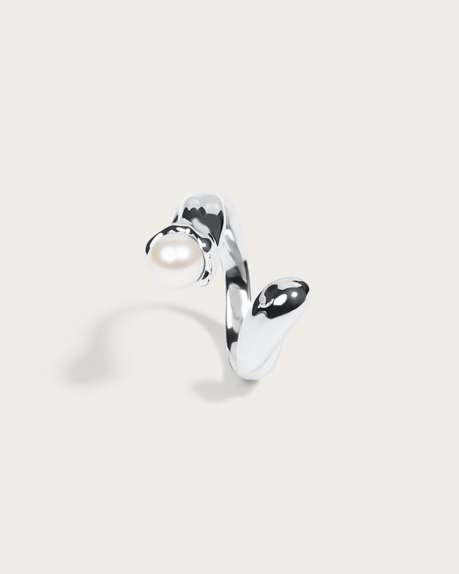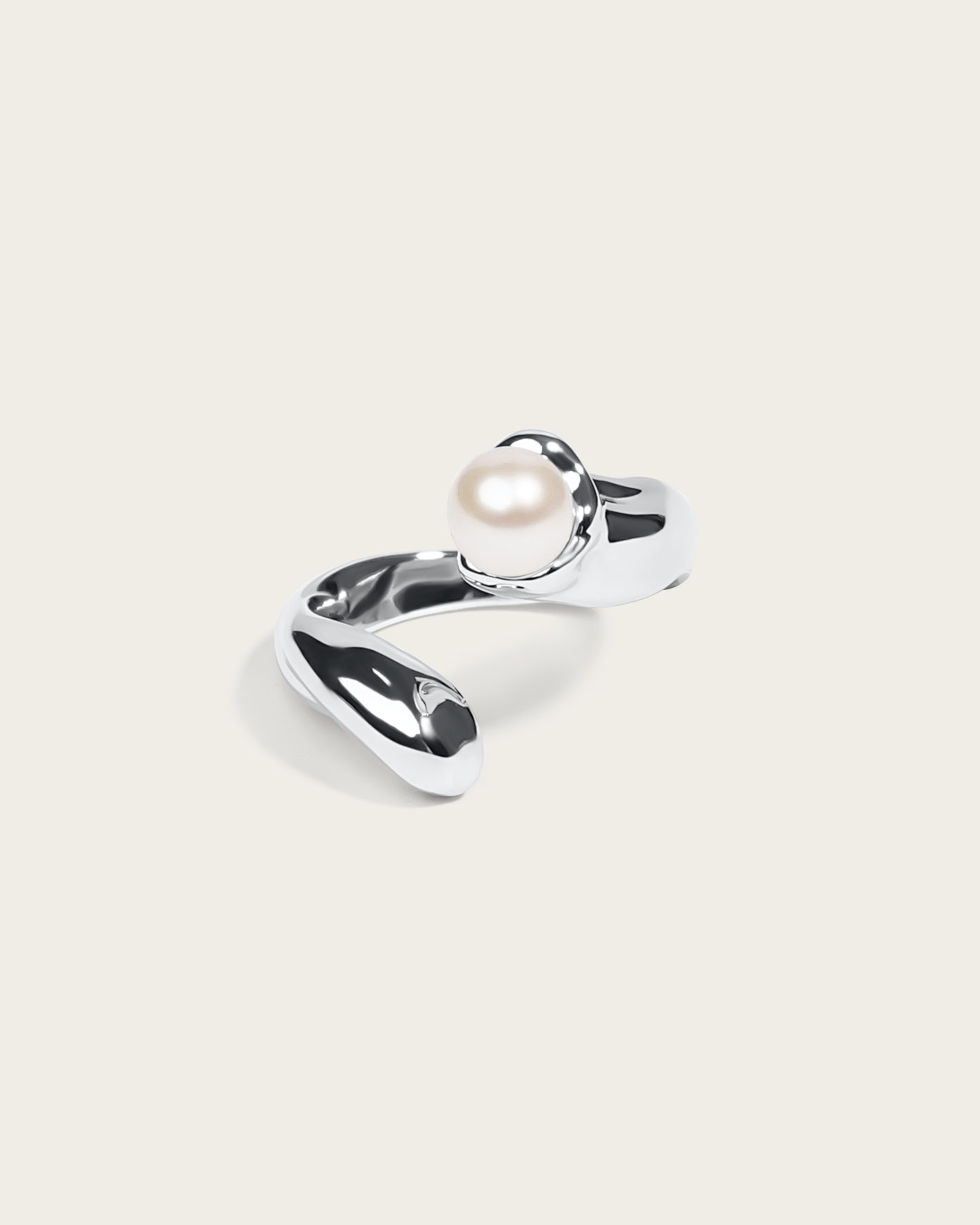 An open-front cuff ring that curves like a silver wave, accented with a single pearl that floats effortlessly above the band. Made from high-polish sterling silver, this piece from the Flow Series is designed to evoke natural rhythm and refined balance.